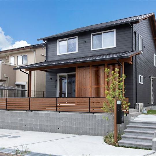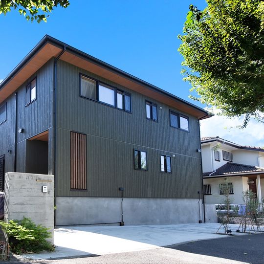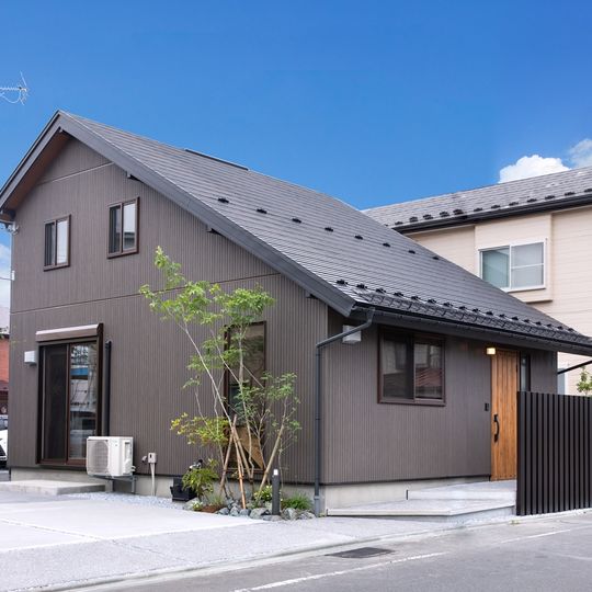 仕切りが少なく開放感のあるオープンな間取り 木格子で包んだシックな外観 キッチン・バス・トイレを北側へ集結させた家事ラク動線 和風旅館のような非日常的な空間を実現しました。 -
