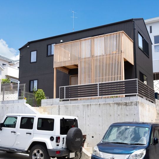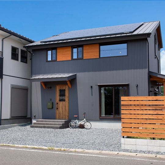 A modern Japanese-style house featuring a dirt ...