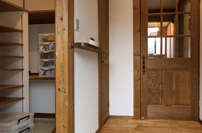 玄関土間に設けたシュークロークと広々パントリーは、たっぷり収納ですっきり!