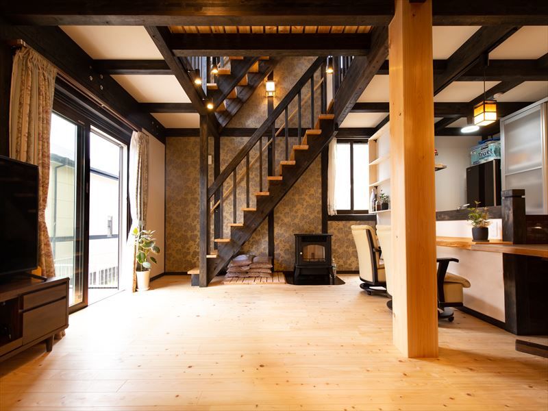 1階は曲力壁をなくし、オープンタイプのフラットな畳コーナーを設置